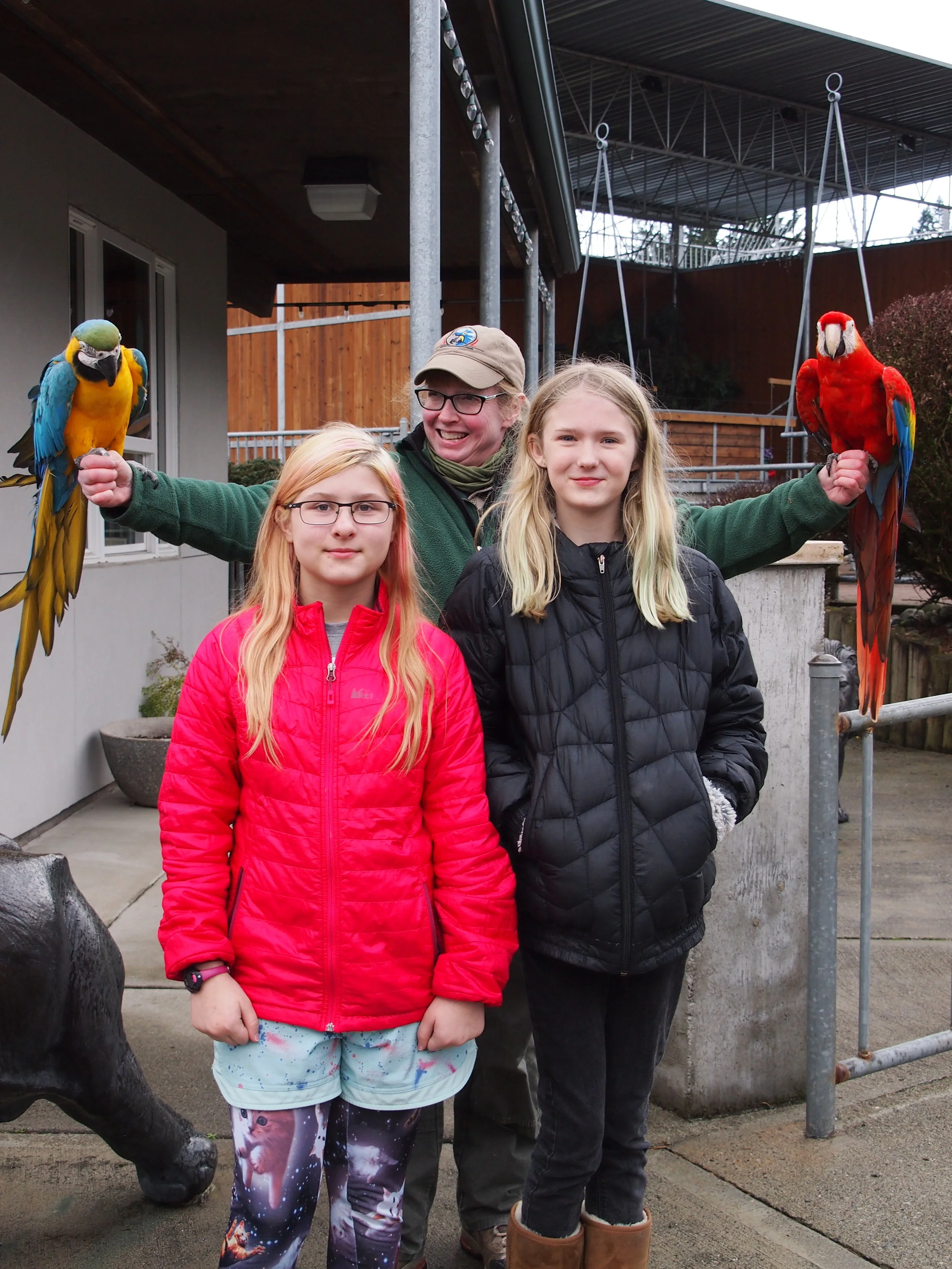 The first time my Mom and I visited Cougar Mountain Zoo was during a warm, sunny weekday and not many other people were there. When we strolled into the Macaw habitat section of the zoo, we heard, "Hello," and we freaked out because there was nobody else around. After a minute, we figured out that it was a talking Macaw! We laughed and then started talking more to it...definitely a highlight (but you will only experience this if the weather is nice and the birds are in their outdoor habitat). While there, we talked to the Macaw zookeepers who told us about how the birds live more than 80 years, are more social than dogs and that they are disappearing because of the destruction of the Amazon rain forest. That experience inspired us to take a family adventure trip to Peru where we actually saw wild Macaws in the Amazon jungle!